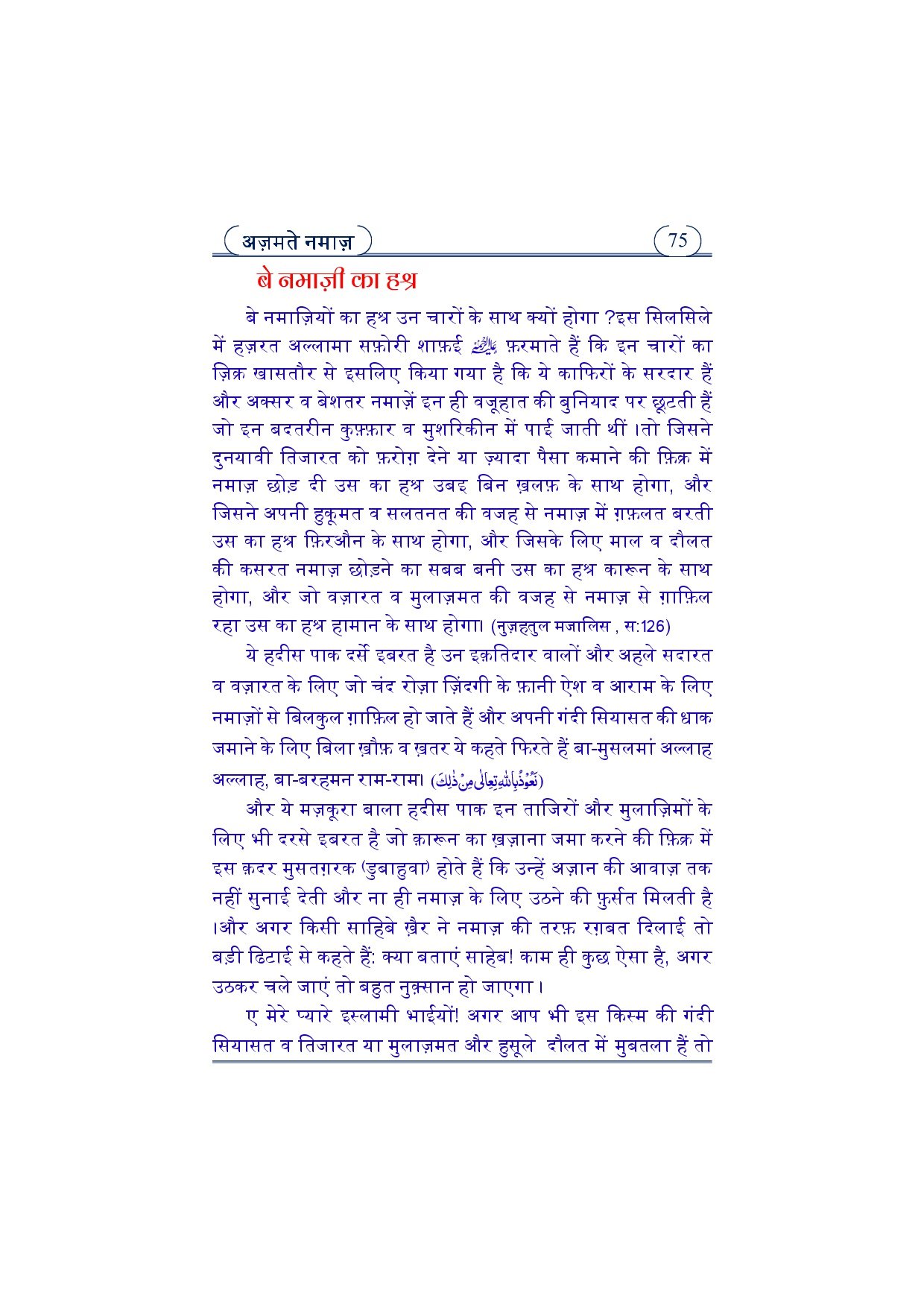 عظمت نماز ہندی