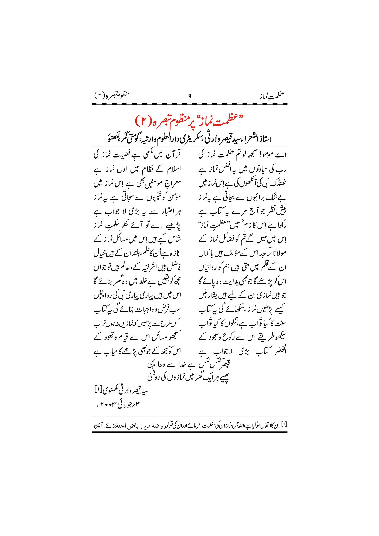 عظمت نماز