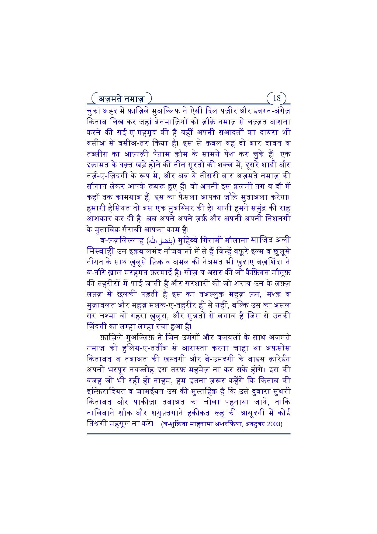 عظمت نماز ہندی