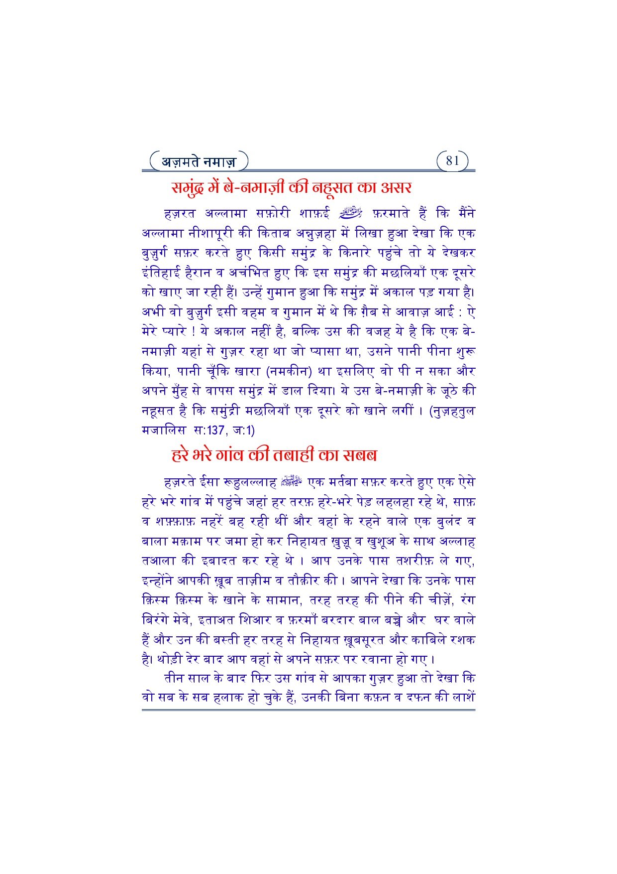 عظمت نماز ہندی