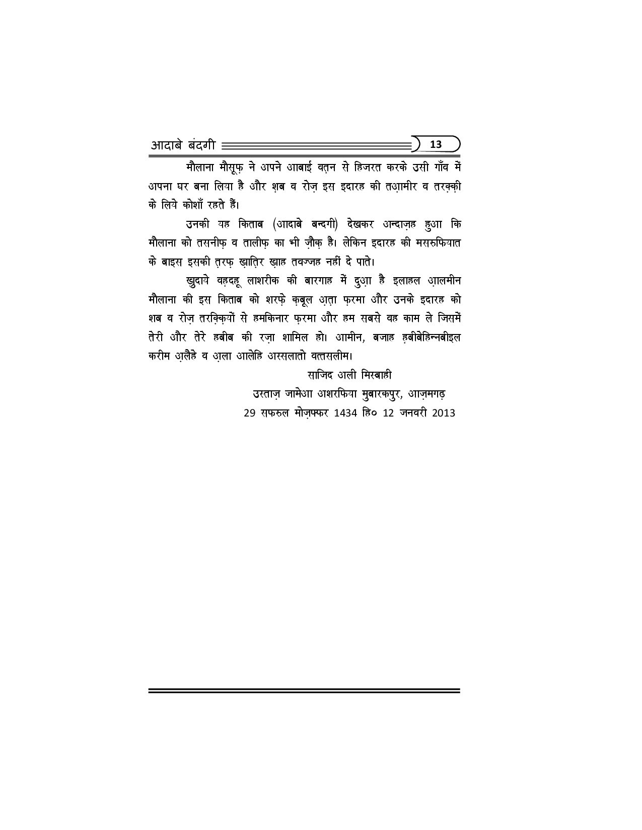 آداب بندگی ہندی