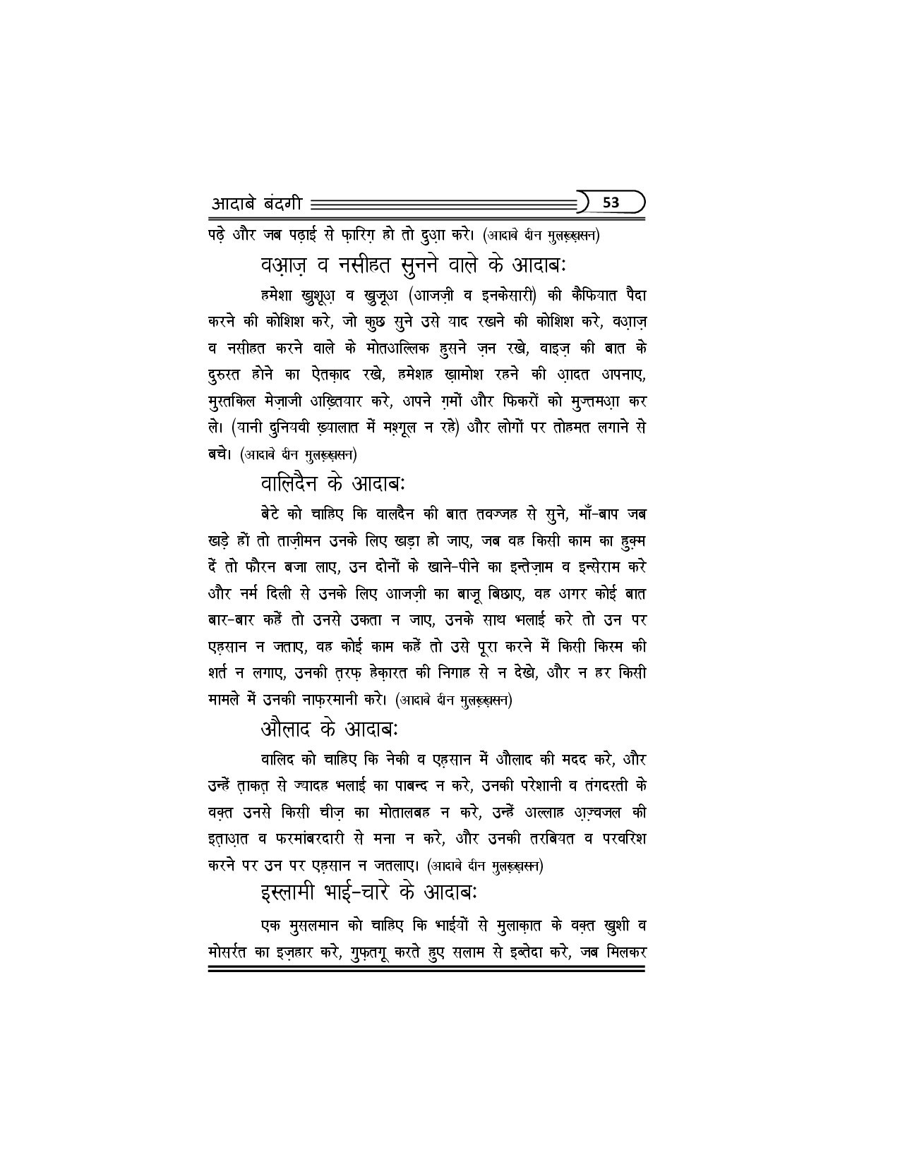 آداب بندگی ہندی