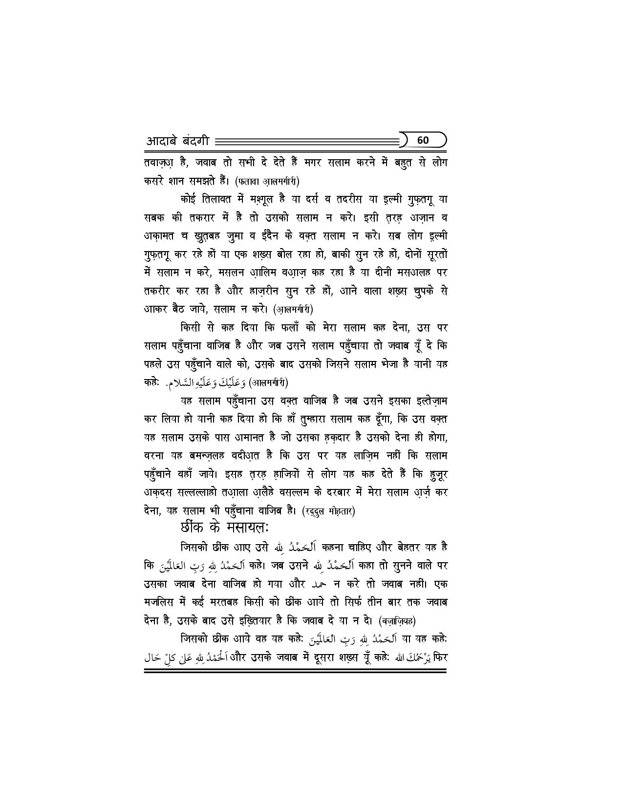 آداب بندگی ہندی